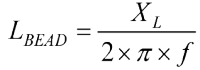 Rysunek 4 pokazuje zmierzoną odpowiedź tego elementu dla zerowego prądu polaryzacji przy użyciu analizatora impedancji. Dla obszaru na zmierzonym wykresie, gdzie koralik wydaje się najbardziej indukcyjny (Z ≈ XL; dla L = LBEAD), indukcyjność koralika jest obliczana z następującego równania: