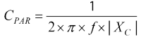 Z równania 2 wynika, że dla tego elementu LBEAD = 1,208 μH. Z obszaru, gdzie koralik wydaje się mieć własności bardziej pojemnościowe (Z ≈ |XC|; dla C = CPAR), pojemność pasożytnicza wyznaczana jest za pomocą równania 3.