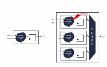 Jeśli jeden z obwodów doświadcza zdarzenia wywołanego promieniowaniem, które wpływa na wyjście, to jego wyjście będzie się różnić od pozostałych dwóch obwodów. Gdyby porównano tylko dwa identyczne obwody, różny stan wyjść pozwoli zidentyfikować, że nastąpiło zdarzenie, ale nie obwód, w którym wystąpiło, ani prawidłowy wynik działania. Przy trzech obwodach można określić prawidłowe wyjście (w oparciu o rozsądne założenie, że prawdopodobieństwo wystąpienia identycznych błędów w dwóch obwodach jest praktycznie zerowe). W zależności od oprogramowania, system może następnie zaakceptować dane wyjściowe większości modułów lub ponowić operację.