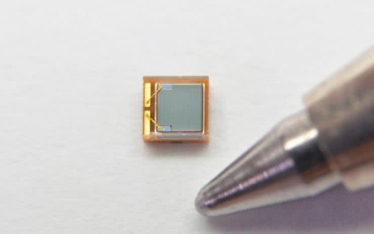 Postęp, jaki dokonał się w zakresie produkcji scalonych detektorów MPPC, umożliwił tak daleko idącą miniaturyzację, że współczesne macierze są wykonywane nawet w rozmiarach rzędu jednego milimetra. Przykładowo, detektor S15639-1325PS marki Hamamatsu (niekwestionowanego lidera na rynku zaawansowanej optoelektroniki) ma wymiary zaledwie 1,1×1,3 mm (fotografia 26), oferuje 2120 pikseli o rozstawie 25 µm i pracuje w zakresie widma od 400 do 1000 nm. Co ważne - napięcie przebicia fotodetektorów wynosi zaledwie 42 V (rekomendowane napięcie szczytowe jest o 14 V wyższe), co pozwala na zasilanie układu bez konieczności stosowania przetwornic HV.