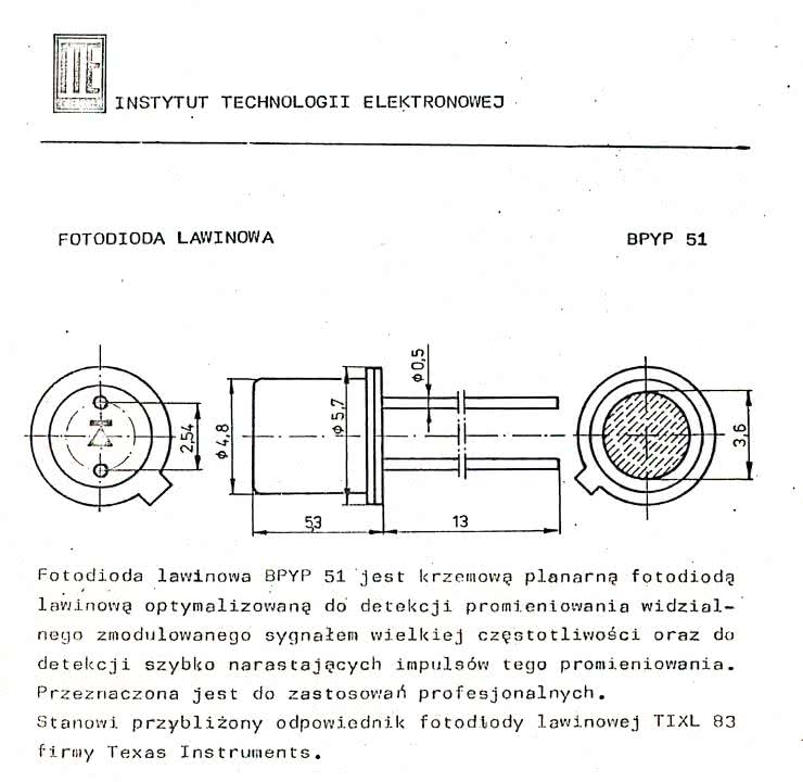 Na marginesie warto dodać, że fotodiody lawinowe - choć oczywiście w nieco innej formie oraz o mniej wyśrubowanych parametrach niż współcześnie, były produkowane już przeszło cztery dekady temu, w tym także na rodzimym gruncie, czego dowodem niech będzie fragment skanu datowanej na rok 1979 noty katalogowej fotodiody BPYP 51, produkowanej przez wchodzący w skład koncernu CEMI Instytut Technologii Elektronowej (fotografia 20).