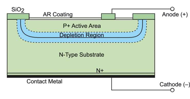 Historycznie najstarsze i jednocześnie najprostsze w budowie są fotodiody typu P-N, bazujące na pojedynczym, nieskomplikowanym złączu dwóch przeciwnie domieszkowanych półprzewodników (rysunek 11). Ten typ struktury raczej dobrze sprawdza się w zastosowaniach fotowoltaicznych, jednak wraz ze wzrostem napięcia zaporowego dość istotnie rośnie jej prąd upływu. Z tego też względu zwykłe fotodiody gorzej radzą sobie w klasycznych układach pomiarowych.