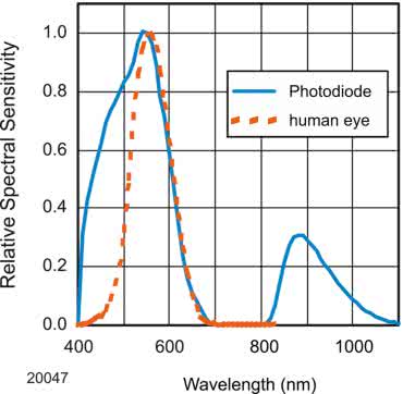 Podobne rozwiązanie stosuje się zresztą także w przypadku sensorów ALS bazujących na fotodiodach (rysunek 9), a jego celem w obu przypadkach jest sterowanie pracą urządzenia (np. jasnością wyświetlacza) w sposób bardziej naturalny dla odbiorcy, niż miałoby to miejsce przy zastosowaniu zwykłych fotoelementów o szerokiej charakterystyce spektralnej. Mamy tu zresztą doskonały przykład przesuwania ciężaru projektowego współczesnych urządzeń elektronicznych w stronę poprawy doświadczeń użytkownika i zwiększania przyjaznego „feelingu” urządzeń.