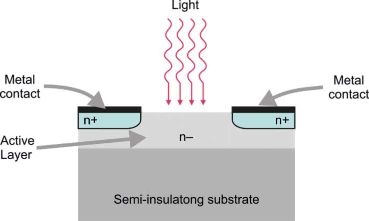 Ultraszybkie fotodiody PIN są szeroko stosowane m.in. w telekomunikacyjnych układach światłowodowych, pracujących z sygnałami o zawrotnej wprost częstotliwości - szerokość pasma niektórych modeli, bazujących na arsenku indowo-galowym (InGaAs), dochodzi nawet do 40 GHz (fotografia 18).