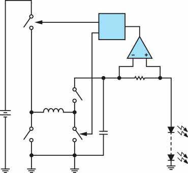 Diody LED można sterować na kilka różnych sposobów, jednak elementy te różnią się od tradycyjnych obciążeń w systemie zasilania. Układ zasilania musi dostarczać prądu o dokładnie regulowanej wartości. Jego przepływ przez złącze półprzewodnikowe powoduje wytworzenie światła, natomiast względne napięcia na wyprowadzeniach diody względem masy systemu (lub karoserii w samochodzie) mogą się zmieniać. W rezultacie systemy zawierające diody elektroluminescencyjne mogą zawierać układy impulsowe w różnych topologiach.