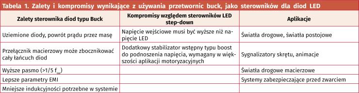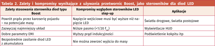 Wybór określonej topologii przetwornicy do pracy w systemie motoryzacyjnym jest związany z projektem całego systemu. Analizując różne topologie należy wziąć pod uwagę między innymi minimalne napięcie wejściowe, maksymalne napięcie zasilania ciągu połączonych diod LED, możliwość powrotu prądu do układu, szansę wystąpienia zwarcia na wyjściu, maksymalny prąd wejściowy diody, a także dodatkowe wymagania, np. związane z możliwością ściemniania diod za pomocą sterującego przebiegu PWM.