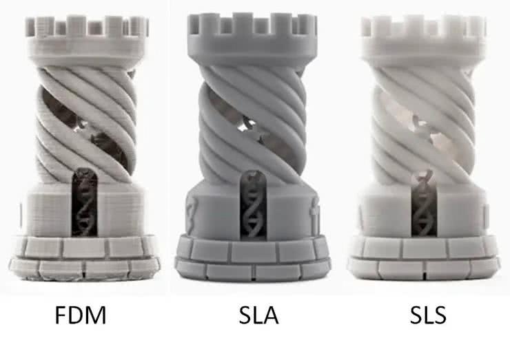 Każda technologia druku 3D bazuje na druku warstwowym, tzn. wytwarzany detal jest „składany” warstwa po warstwie z materiału źródłowego. W przypadku SLS jest to proszek z materiału, z jakiego wydrukowany ma być element, a w przypadku SLA specjalna żywica. To, co jeszcze łączy te dwie technologie, to fakt, że obie używają światła w procesie wydruku. Przekłada się to na wysoką rozdzielczość procesu, gdyż jest on ograniczony jedynie rozdzielczością układu optycznego, która może bez problemu być na poziomie pojedynczych mikronów.
