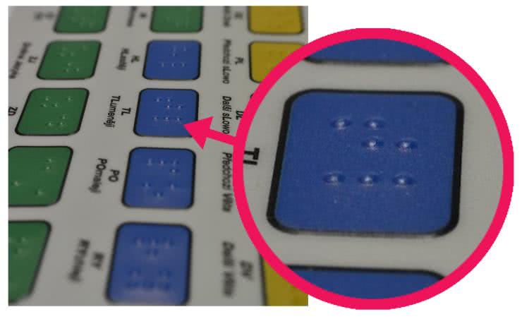 Jak pokazuje praktyka, użytkownikami urządzeń elektronicznych bywają osoby słabowidzące. Podświetlenie klawiatury nie zawsze jest wystarczające do tego, by osoby takie mogły swobodnie używać obsługiwanych urządzeń. Firmy produkujące klawiatury wychodzą w takich przypadkach użytkownikom naprzeciw. Udogodnieniem dla osób słabowidzących jest wytłoczenie na przycisku napisu w alfabecie Braille’a (fotografia 2).