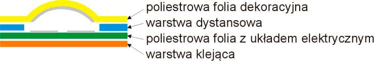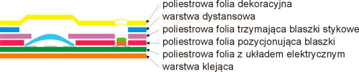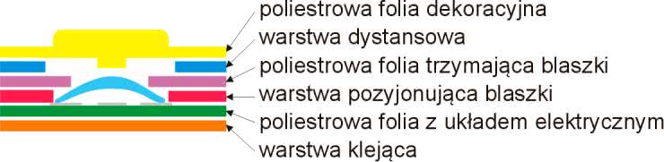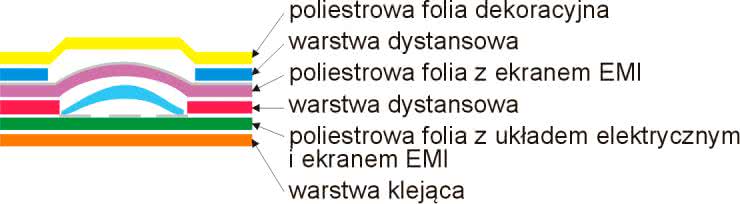 Klawiatura składa się z 4 warstw. Na warstwie wierzchniej jest nanoszona grafika określająca wygląd zewnętrzny klawiatury. Pod nią znajduje się perforowana warstwa dystansowa, oddzielająca warstwę elewacyjną od poliestrowej folii, z naniesionymi na niej połączeniami i elementami stykowymi klawiatury. Na samym dnie instaluje się jeszcze warstwę klejącą, umożliwiającą trwałe zamocowanie klawiatury na powierzchni panelu czołowego urządzenia.