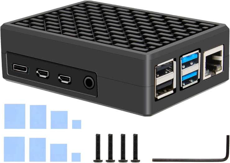 - Radiator w formie obudowy – trzecie rozwiązanie może okazać się najefektywniejsze ze wszystkich opisanych do tej pory, ma jednak pewną wadę – obudowę trzeba zaprojektować oraz wyprodukować z myślą o konkretnym modelu urządzenia i nie da się zastosować jej do jakiegokolwiek innego sprzętu. Ekspansja minikomputerów jednopłytkowych upowszechniła to rozwiązanie jako zapewniające doskonałe warunki chłodzenia za sprawą dużej powierzchni oddawania ciepła – przykład można zobaczyć na fotografii 16.