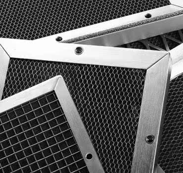 - Ochrona otworów wentylacyjnych przed RFI – każdy otwór w metalowej obudowie urządzenia (odgrywającej rolę ekranu) stanowi „wyłom” w ochronie przed emisją i odbiorem zakłóceń elektromagnetycznych. Dlatego też w urządzeniach, w których skuteczne niwelowanie zakłóceń radiowych ma znaczenie pierwszorzędne, powszechnie stosowane są rozmaite osłony w postaci siatek ortogonalnych bądź „plastrów miodu” (fotografia 25) – za cenę pewnego oporu stawianego przepływowi powietrza, elementy te są w stanie skutecznie „uszczelnić” system ekranowania.