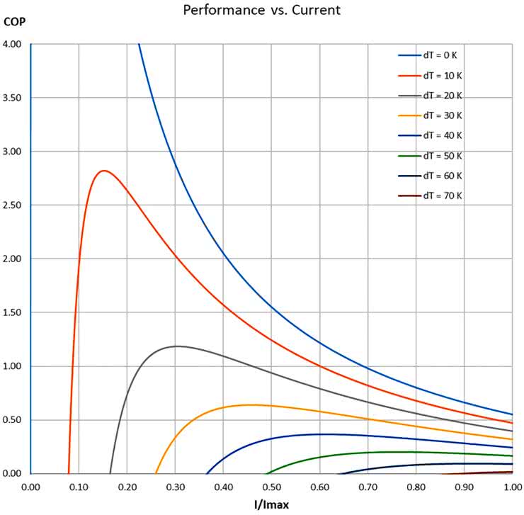 Termoelektryczne systemy chłodzenia pozwalają na uzyskanie istotnego obniżenia temperatury za cenę znacznego zwiększenia ilości ciepła, które trzeba rozproszyć do otoczenia. O ile bowiem pozostałe opisane w niniejszym artykule rozwiązania oddają do atmosfery tylko ciepło wygenerowane przez chłodzony element, to w przypadku ogniw Peltiera trzeba jeszcze wytracić dodatkową energię, co wymusza niejako… chłodzenie systemu chłodzenia (fotografia 30). Co gorsza, rzeczywista wydajność znacząco maleje wraz ze wzrostem natężenia prądu zasilania oraz różnicy temperatur pomiędzy stroną gorącą a stroną zimną. Podstawowym parametrem rozważanym w systemach chłodzenia termoelektrycznego jest współczynnik wydajności (COP), będący ilorazem ciepła zaabsorbowanego po stronie zimnej (czyli odebranego z chłodzonego elementu) oraz mocy dostarczonej do modułu Peltiera z systemu zasilania.