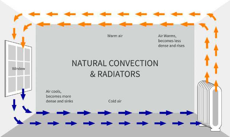 Konwekcja swobodna polega na przemieszczaniu się mas gazu (zwykle powietrza) lub cieczy (np. w systemach chłodzenia wodnego), ogrzanych przez kontakt z gorącym elementem, ku górze (rysunek 10). Za proces ten odpowiadają subtelne zmiany w lokalnej gęstości danego ośrodka. Unoszenie ogrzanych warstw gazu (cieczy) niejako „przygotowuje miejsce” do uzupełnienia przez otaczające masy o niższej temperaturze. Proces ten zachodzi samoczynnie i tym intensywniej, im wyższa jest różnica temperatur pomiędzy ośrodkiem a źródłem ciepła.