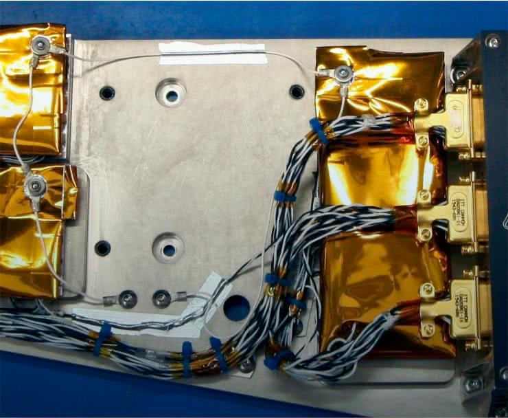- Praca w próżni – aparatura pracująca w otwartej przestrzeni kosmicznej jest narażona nie tylko na nadmiar ciepła wynikający z własnych strat mocy – równie istotnym zagrożeniem okazują się wahania temperatury, zwłaszcza w przypadku satelitów krążących relatywnie blisko Słońca (a więc m.in. wszystkich orbiterów ziemskich i księżycowych). Odprowadzanie ciepła z wnętrza urządzeń jest niemożliwe przy użyciu konwekcji, stanowiącej główną metodę wytracania nadmiaru energii w warunkach ziemskich. Do dyspozycji pozostaje więc tylko przewodzenie (od źródeł ciepła do radiatorów i innych elementów chłodzących) oraz promieniowanie (z zewnętrznych powierzchni). W aplikacjach kosmicznych można zatem znaleźć głównie płyty chłodzące, specjalne systemy na bazie tzw. oscylacyjnych rurek ciepła (fotografia 6), a także moduły termoelektryczne (Peltiera). W każdym przypadku jednak usunięcie nadmiaru ciepła poza urządzenie może opierać się już tylko na promieniowaniu termicznym.