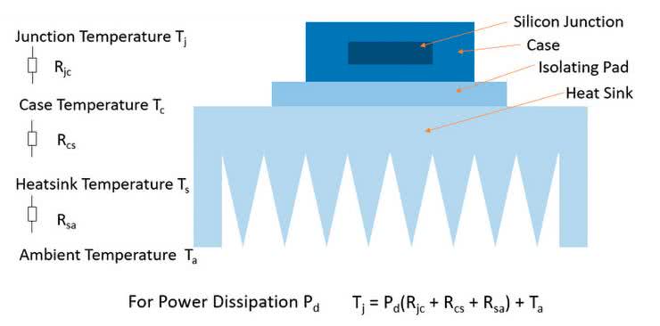 - rezystancji termicznej obudowa-radiator (co w praktyce jest równoważne z rezystancją warstwy materiału termoprzewodzącego), Rth(c–s),