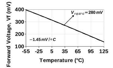 Wymienione przykłady to zaledwie początek długiej listy odwracalnych zmian, jakie zachodzą w komponentach elektronicznych pod wpływem podwyższonej temperatury pracy. Powszechnie znana jest chociażby zależność dewiacji częstotliwości rezonatorów kwarcowych od temperatury, co ciekawe – silnie związana z zastosowanym kątem cięcia kryształu (rysunek 7). Sytuacja jest znacznie bardziej złożona w przypadku elementów półprzewodnikowych – te wykazują bowiem nie tylko zależność szeregu parametrów elektrycznych od temperatury, ale także różnią się kształtem charakterystyki. O ile prostsze elementy cechują się raczej monotoniczną (a nawet liniową) zależnością od temperatury (jako przykład można podać napięcie przewodzenia diody Schottky’ego – patrz rysunek 8), to już bardziej złożone układy scalone, wyposażone w obwody kompensacyjne, mogą wykazywać dość złożone przebiegi charakterystyki termicznej, wynikające wprost z zastosowanej konstrukcji układu (rysunek 9).