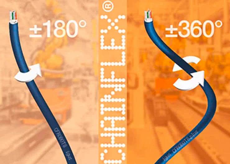 W szczególnych przypadkach niezbędna może okazać się także odporność przewodu na skręcanie w jego osi długiej (fotografia 7) - tego typu sytuacje występują powszechnie w rozmaitych mechanizmach, w tym w przegubach robotów przemysłowych. Dobór odpowiedniego kabla może zniwelować konieczność stosowania złączy obrotowych (lub montowania kabla o nadmiarowej długości), o ile rzecz jasna zakres obrotów jest ograniczony np. do ±180°/m bądź ±360°/m. Należy bowiem wziąć pod uwagę, że rzeczywisty zakres dopuszczalnego ruchu obrotowego zależy liniowo od długości odcinka poddawanego skręcaniu - wynika to wprost z ograniczenia maksymalnych naprężeń skręcających, którym podlega wewnętrzna struktura przewodu.