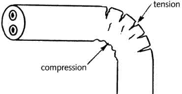 Uwzględnienie minimalnego promienia zginania przewodu już na etapie projektu instalacji pozwala na zachowanie konstrukcji w stanie nienaruszonym, a przy tym niweluje ryzyko powstawania uszkodzeń izolacji bądź wewnętrznych pęknięć przewodników, wynikających z silnych naprężeń ściskających i rozciągających (rysunek 1).