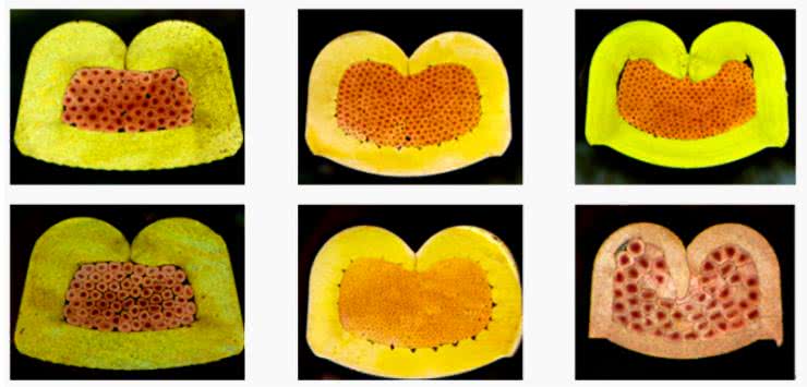 Na fotografii 20 można zobaczyć mikrofotografie kilku przekrojów (tzw. zgładów) prezentujących części zaciskowe konektorów współpracujące z żyłą (drugi, większy zacisk - obecny w konektorach płaskich, oczkowych i widełkowych - jest przeznaczony do zaciśnięcia na izolacji przewodu). Z pozoru sześć obrazów zebranych na fotografii 20 różni się głównie strukturą samego przewodnika (liczbą i rozmiarami drucików składających się na linkę) oraz grubością blachy, z której wykonano samo złącze. Ekspert zobaczy jednak tutaj kilka problemów, świadczących o nie do końca zoptymalizowanym przebiegu procesu zaciskania. Aby lepiej zobrazować wybrane z nich, przyjrzyjmy się kolejnym fotografiom, na których ukazano bardziej „drastyczne” przypadki.