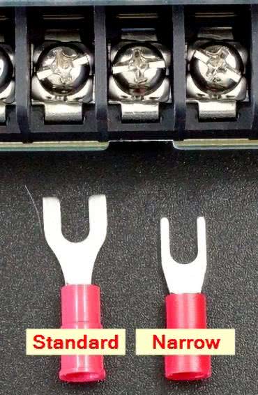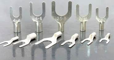 Końcówki widełkowe, z uwagi na możliwość montażu niewymagającego całkowitego zdemontowania śruby, są natomiast chętnie stosowane w połączeniu z terminalami śrubowymi, np. złączami barierowymi w zasilaczach średniej i dużej mocy. Warto przy tym zwrócić uwagę na ilość dostępnego miejsca pomiędzy brzegami przedziału złącza (ściankami korpusu izolacyjnego) a śrubą - w zależności od konstrukcji złącza i wymiaru śruby, konieczne może być zastosowanie końcówki widełkowej o kształcie standardowym lub zwężanym (fotografia 12).