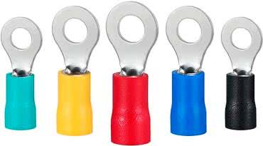 Konektory oczkowe (fotografia 9) i widełkowe (fotografia 10) współpracują z zaciskami śrubowymi, przy czym pierwsze z nich znajdują zastosowanie najczęściej w wykonywaniu połączeń uziemienia (fotografia 11), w ramach których współpracują z odpowiednio zwymiarowaną śrubą (zaciskiem).