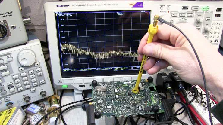 Niezwykle wartościowym narzędziem podczas wstępnego „przeszukiwania” PCB w celu określenia źródeł niepożądanych emisji są sondy pola bliskiego (fotografia 2). Pozwalają one nie tylko na ustalenie przybliżonego położenia źródła (np. układu scalonego odpowiedzialnego za generowanie zaburzeń), ale wręcz na zlokalizowanie najbardziej problematycznych ścieżek. Duże znaczenie ma tutaj kierunkowy charakter sond pola magnetycznego (H-field), których czułość jest największa tylko w jednej orientacji względem badanego przewodnika. Pewnym problemem okazuje się silny wpływ odległości sonda-PCB na amplitudę mierzonego sygnału – przy odrobinie zachodu da się jednak tak przygotować stanowisko pomiarowe, by możliwe było prowadzenie pomiarów porównawczych (np. przed i po wymianie dławika lub kondensatora odsprzęgającego). Jeszcze bardziej powtarzalne warunki stwarzają komory TEM – umożliwiają one ponadto przekonwertowanie wyników pomiaru na postać porównywalną (w pewnym ograniczonym zakresie) z wynikami otrzymywanymi podczas testów w pełnowymiarowych komorach SAC. I choć konwersja z pola bliskiego na pole dalekie nie jest zagadnieniem prostym pod względem matematycznym, to mimo wszystko zastosowanie TEM w testach inżynierskich okazuje się niezwykle cennym narzędziem, daje bowiem pewną zgrubną aproksymację wyników, których należy spodziewać się po pełnych badaniach EMC w profesjonalnym laboratorium. Mało tego – przy zastosowaniu odpowiedniego wzmacniacza mocy oraz generatora RF lub wyjścia TG (generatora śledzącego) dostępnego w analizatorze widma, możliwe jest wstępne testowanie odporności prototypu na zakłócenia propagowane drogą radiową.