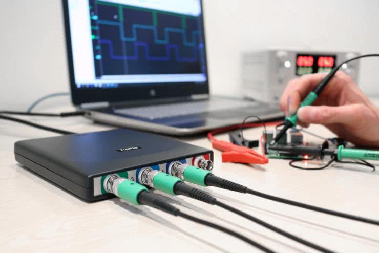 Zaawansowani elektronicy mają do dyspozycji profesjonalne oscyloskopy umożliwiające tworzenie systemów wielokanałowych i oferujące nie tylko szerokie pasmo, ale także sporą pamięć (długi rekord danych). Niezaprzeczalną zaletą oscyloskopów USB jest też możliwość pracy w całkowitym odcięciu od sieci energetycznej – często wystarcza bowiem zasilanie z portu USB laptopa. W aplikacjach energetycznych, badaniu sterowników napędów EV czy serwisie falowników przydatne mogą być natomiast przystawki zdolne do pomiarów w trybie różnicowym. Firma TiePie wprowadziła na rynek interesujące oscyloskopy o dużych możliwościach, szybkim taktowaniu i sporej pamięci wbudowanej – przykładowe urządzenie można zobaczyć na fotografii 7.