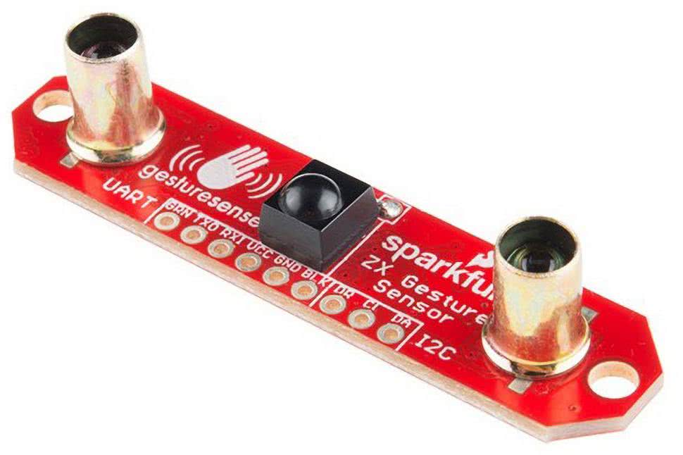 Praca z zasilaniem emitera (diody nadawczej IR) prądem stałym zdecydowanie nie byłaby najlepszą opcją, a to ze względu na znaczną podatność na zmienność warunków oświetlenia zewnętrznego, nawet przy zastosowaniu skutecznego filtru optycznego na pasmo podczerwieni. Zdecydowanie lepiej zastosować światło modulowane – a skoro tak, to (prawie) nic nie stoi na przeszkodzie, by do wykrywania światła odbitego od dłoni zastosować scalony odbiornik podczerwieni, spotykany powszechnie w systemach zdalnego sterowania IR. Jeśli wzbogacimy go o dwa, załączane naprzemiennie emitery, uzyskamy możliwość wykrywania przybliżonej odległości, ale także… kierunku przesuwania dłoni w jednej osi. Dokładnie tak działa jeden z modułów marki SparkFun – ZX Gesture Sensor (fotografia 11).