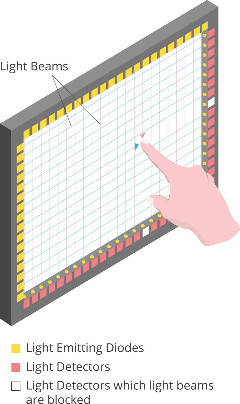 A jakie są wady paneli dotykowych IR? Podstawowa i zarazem największa wada wynika wprost z samej technologii: uzyskanie relatywnie wysokiej rozdzielczości wymaga stosowania setek, a nawet tysięcy fotoelementów i diod LED, montowanych na długich i dość rozbudowanych płytkach drukowanych. To wprost idealny przepis na drogą technologię, która jest równie skalowalna, co wrażliwa na ceny i liczbę zastosowanych komponentów.