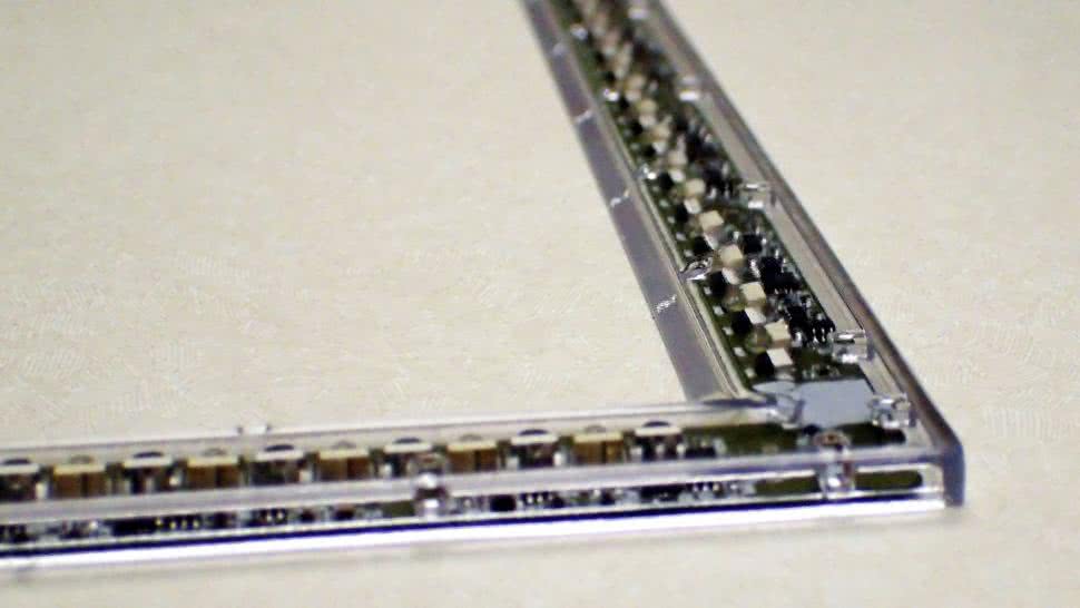 Zasada działania jest banalnie prosta – zbliżenie palca na odległość wystarczającą do przerwania wiązek światła powoduje, że określone fotodetektory, zamontowane na krawędziach ramki (fotografia 8), są przesłaniane. Przerwanie danej bariery optycznej jest jednoznacznym wskazaniem współrzędnej w osi X lub Y.