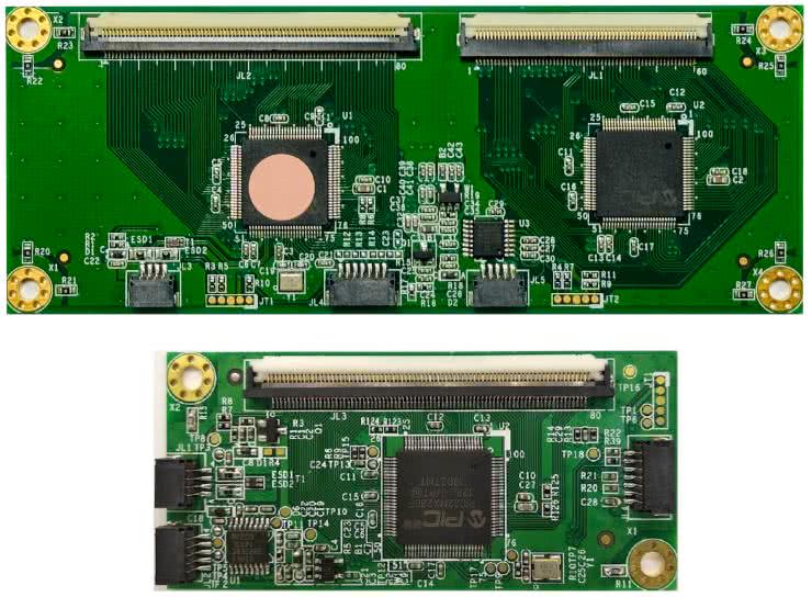 Patrząc na schematy pokazane na rysunku 2 nietrudno dojść do słusznego wniosku, że klasyczna technologia rezystancyjna uniemożliwia realizację funkcji multi-touch. Tak jest w istocie – dotknięcie ekranu w dwóch lub kilku punktach jednocześnie zaburzy pomiar i spowoduje wygenerowanie fałszywych, „pośrednich” wyników. Warto jednak dodać, że istnieją sposoby obejścia tego problemu – wymagają one jednak podziału warstw ITO na mniejsze pola, co niebywale komplikuje przemiatanie ekranu i wymusza znaczną rozbudowę sprzętową kontrolera. Widać to doskonale na fotografii 4, pokazującej przykładowe sterowniki panelu multi-touch – imponująco duże złącza krawędziowe to jedyny sposób na podłączenie obszernego zestawu elektrod, biegnących od touchpanelu w zintegrowanej z nim taśmie FPC.