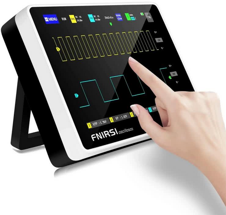 Równocześnie transformacji ulega także obraz rynku oscyloskopów widziany od strony ergonomii – urządzenia stają się lżejsze, rozmiary ekranów rosną, ale… odbywa się to kosztem stopniowej redukcji klasycznych elementów obsługowych, czyli pokręteł i przycisków. Nie da się ukryć, że forma współczesnych oscyloskopów coraz bardziej zaczyna przypominać rozwiązania znane z elektroniki konsumenckiej, w tym przede wszystkim smartfonów czy tabletów – skrajnym przykładem może być popularny ostatnimi czasy oscyloskop Fnirsi 1013D, który jest już obsługiwany w całości za pomocą ekranu dotykowego (fotografia 21).