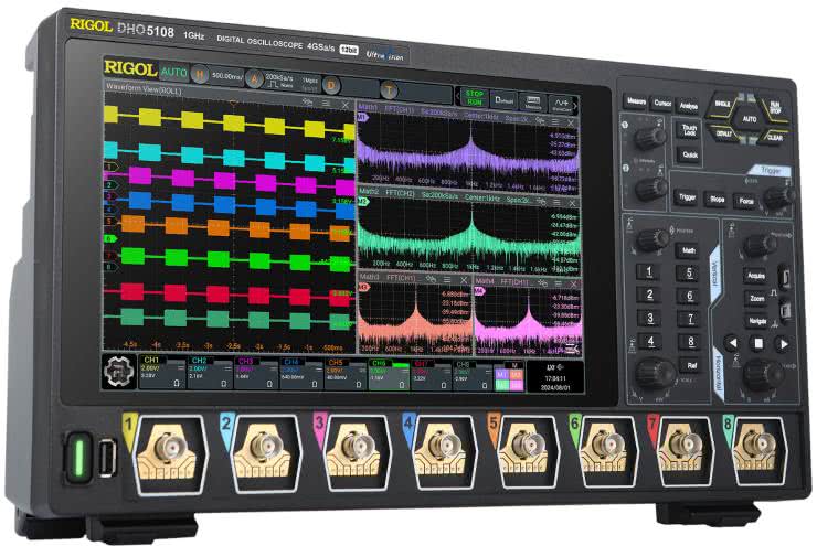Cena katalogowa? „Jedyne” 153 tysiące dolarów amerykańskich. Dla porównania pierwszy (i chyba jak dotąd jedyny) budżetowy oscyloskop 8-kanałowy, czyli DHO5000 marki Rigol (fotografia 17) oferuje pasmo 1 GHz i próbkowanie 4 GSa/s, ale tylko przy aktywnych 4 kanałach z tej samej grupy (parzyste/nieparzyste). Przy włączonych 8 kanałach ostatnia wartość spada do 2 GSa/s. Cena? Około 77 tysięcy złotych.