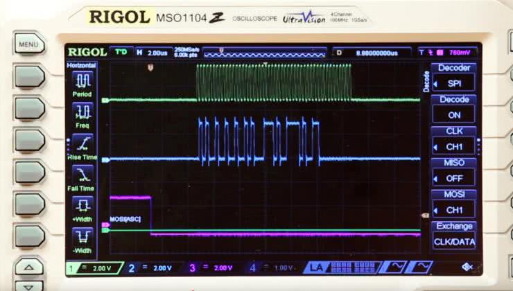 Kolejnym wyraźnym trendem na rynku oscyloskopów cyfrowych jest upowszechnienie funkcji przeznaczonych do dekodowania sygnałów na liniach cyfrowych (np. I²C, SPI, UART, CAN czy USB). Do niedawna taka funkcjonalność była zarezerwowana tylko na użytkowników z dość zasobnym portfelem, których stać było na zakup w pełni wyposażonego sprzętu wraz z odpowiednią (zwykle kosztowną) sondą logiczną. Sytuacji na rynku nie zmieniło też udostępnienie tanich oscyloskopów z funkcją MSO, w tym popularnej serii DS1000Z Plus marki Rigol (fotografia 11) – z praktyki autora, a także przeglądu licznych materiałów internetowych, jasno wynika, że raczej niewielu użytkowników decydowało się na zakup dodatkowej sondy logicznej i raczej wybierało inne opcje – dekodowanie za pomocą czterech kanałów analogowych (fotografia 3) albo zakup zewnętrznej przystawki USB pełniącej rolę (znacznie bardziej zaawansowanego i często dużo tańszego niż sama sonda) analizatora stanów logicznych.