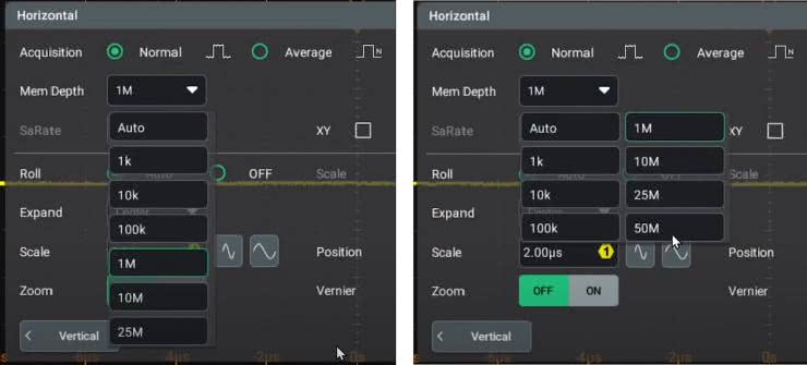 Nie ulega wątpliwości, że układy pamięci dynamicznej z roku na rok są coraz pojemniejsze, szybsze, a także... tańsze. Ten trend doprowadził do ciekawej sytuacji na rynku oscyloskopów – producentom bardziej opłaca się instalować fabrycznie pamięć w pełnym możliwym rozmiarze (dla danego modelu) i ograniczać ją programowo w celu dywersyfikacji oferty, niż produkować kilka wersji różniących się liczbą i/lub pojemnością znajdujących się na płycie „kości”.