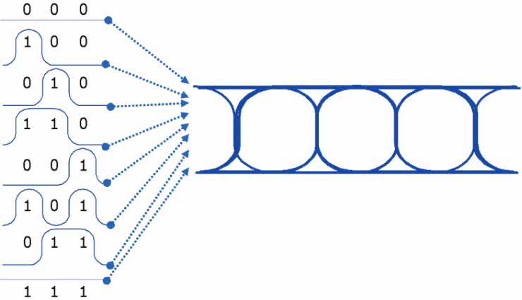 Specjalistyczne oprogramowanie współpracujące z najnowocześniejszymi oscyloskopami w dużej mierze automatyzuje cały proces pomiaru, tworząc rozbudowane raporty oraz klasyfikując DUT pod kątem (nie)spełnienia wymogów narzuconych przez specyfikację standardu USB. Warto w tym miejscu przypomnieć, że diagram oka nie jest po prostu zwykłym nałożeniem na siebie kolejnych przebiegów zmierzonych na cyfrowej szynie danych. W rzeczywistości bowiem do utworzenia takiego wykresu konieczne jest zaawansowane odzyskiwanie sygnału zegarowego (clock recovery), dzięki któremu oprogramowanie oscyloskopu jest w stanie utworzyć wiarygodną reprezentację „statystyczną” zboczy i stanów na linii (poprzez nałożenie na siebie oscylogramów zarejestrowanych dla kombinacji trzech kolejnych bitów: 000, 001, 010, 011, 100, 101, 110 oraz 111 – patrz rysunek 2).