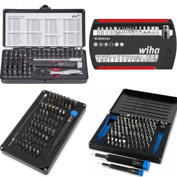 Na rynku nie brakuje zestawów do wyboru. Zaleca się jednak wybrać markowy zestaw dobrej klasy, gdyż tanie komplety chińskie oraz te dostępne w dyskontach są wykonane z miękkich materiałów i przez to ich trwałość jest niewystarczająca. Do codziennych prac z większymi gabarytowo urządzeniami zaleca się zestawy w rodzaju pokazanego na fotografii 22 kompletu (DeWalt DT7969).