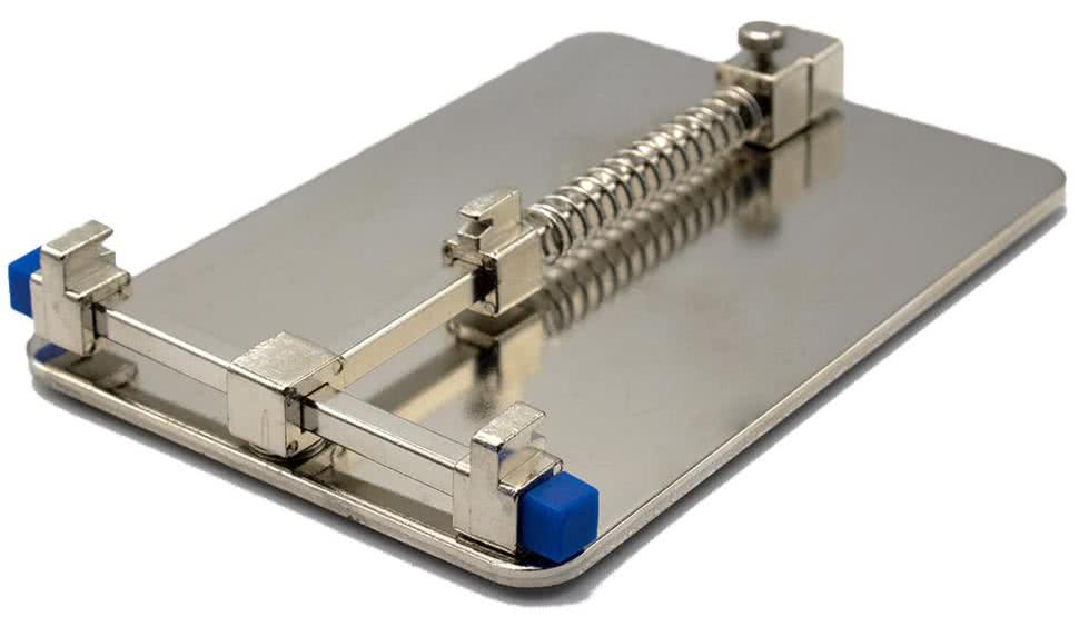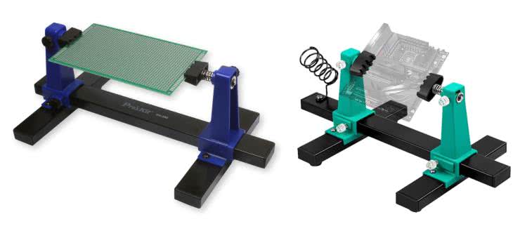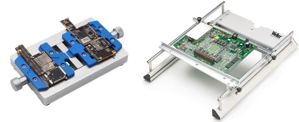 Do większych płytek drukowanych dostępne są duże uchwyty, jak na fotografii 11. Stanowią one rozwinięcie idei uchwytu z fotografii 9 i zapewniają stabilną podstawę do pracy nawet przy płytach głównych komputerów czy urządzeń przemysłowych.