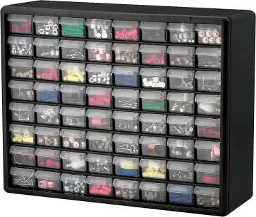 Kolejnym, bardzo przydatnym przedmiotem są wszelkiej maści tacki i pojemniki na drobne części. Szczególnie przy naprawach urządzeń przydaje się organizer na wkręty, elementy plastikowe, gałki i przyciski, płytki i moduły.