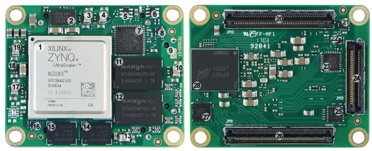 Po stronie ograniczeń należy wymienić stosunkowo wysokie wymagania dotyczące precyzji wykonania płytki oraz konieczność przestrzegania ścisłych wymogów mechanicznych i elektrycznych, zdefiniowanych przez standard danego interfejsu (np. grubość laminatu, długość i pokrycie padów, dodatkowe otwory montażowe etc.). Warto również podkreślić, że złącza krawędziowe są szczególnie dobrze przystosowane do montażu pionowego modułów względem płyty głównej, co sprzyja optymalizacji przepływu powietrza w urządzeniach z aktywnym chłodzeniem. W nowszym wydaniu często stosowane są też poziome złącza pamięci w standardzie SO-DIMM, pozwalające na umieszczenie minikomputera SoM równolegle do płyty bazowej (fotografia 20), co stanowi rozwiązanie niskoprofilowe, wygodne w implementacji i... sprawdzone w boju przez wielu producentów modułów.