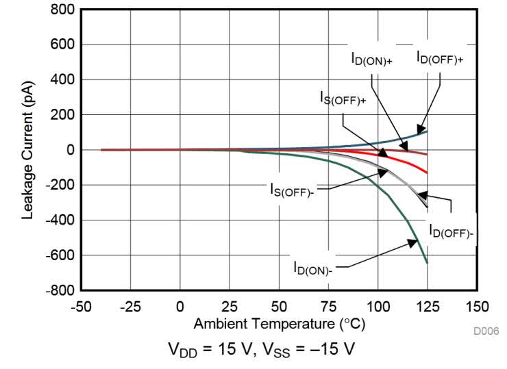 Przejrzenie charakterystyki z rysunku 8 potwierdza prawdziwość tych słów, ale tylko w temperaturze pokojowej lub niższej. Po silnym podgrzaniu wartość prądu upływu rośnie wielokrotnie, co nie zmienia faktu, że to nadal bardzo ciekawy układ, parametrami bijący na głowę takie starocie, jak CD4051. Te zaś nadal mają szereg zastosowań, ale psują renomę współczesnym multiplekserom w oczach wielu „starych wyjadaczy”, jakoby półprzewodnikowe przełączniki sygnałów analogowych były wolne, miały wysoki prąd upływu i wprowadzały znaczącą pojemność do toru sygnałowego. Otóż okazuje się, że w XXI wieku mamy do wyboru coś lepszego niż CD4051. Choć one nadal mają swoje zastosowania. Przykładowo w jednym z moich projektów pełną funkcję przełączników napięć stałych z przedziału 0…5 V, zwiększając dostępną liczbę wejść analogowych mikrokontrolera ATmega – i radzą sobie w tej funkcji znakomicie, kosztując przy tym kilkadziesiąt groszy za sztukę.