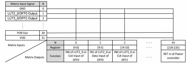 Wspomniany blok PIXI umożliwia konfigurację dwudziestu wyprowadzeń układu w dowolny sposób – mogą się one stać zarówno wejściami, jak i wyjściami analogowymi (każde o innym zakresie napięć) i cyfrowymi o regulowanej czułości (w przypadku wejścia) lub ustalanym napięciu wyjściowym (w przypadku wyjść). Przy użyciu wyprowadzeń tego bloku można też tworzyć konwertery poziomów logicznych. Jest to okupione koniecznością zasilania układu trzema różnymi napięciami (jedno dla części cyfrowej i dwa dla analogowej), za to jego możliwości stają się dzięki temu tak duże.
