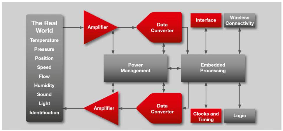 Coraz częściej mamy również do czynienia z integracją bloków analogowych w strukturach układów cyfrowych. Sztandarowym przykładem mogą być mikrokontrolery, mające na pokładzie z reguły ADC, DAC, jakiś multiplekser i niekiedy prosty wzmacniacz operacyjny. W tym wypadku widać wyraźną przewagę części cyfrowej nad analogową. Lecz stosunek ten bywa odwrócony: do układu stricte analogowego (na przykład wzmacniacza napięciowego) został dodany niewielki moduł cyfrowy, komunikujący się za pośrednictwem I²C (lub innego interfejsu), który umożliwia łatwą zmianę jego wzmocnienia lub wyłączenie wyjścia. Mamy układ analogowy? Mamy. Czy łatwo można nim sterować z poziomu aplikacji? Owszem.