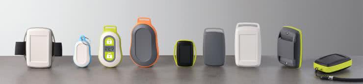 Seria OKW MINITEC (fotografia 14) jest jednym z najbardziej rozpoznawalnych (a zarazem nielicznych) rozwiązań w tym segmencie – ergonomiczny kształt oraz kompaktowe rozmiary obudów predestynują je do zastosowań w miniaturowych czujnikach aktywności, niewielkich urządzeniach medycznych, lokalizatorach GPS bądź systemach przywoławczych (SOS) dla osób starszych. Obudowy te zapewniają odpowiednią trwałość mechaniczną i są przystosowane do różnych opcji mocowania na ciele użytkownika – głównie za pośrednictwem pasków nadgarstkowych, ramiennych czy biodrowych albo pojedynczych tasiemek do zawieszenia. Podstawowe elementy (dno oraz pokrywa górna) występują w trzech barwach (biały, czarny oraz ciemnoszary – „lava”) natomiast uszczelki (zintegrowane z opcjonalnymi uszami do przewleczenia paska) są dostępne w szerokiej gamie kolorów (biały, jasnoszary, ciemnoszary, czarny, pomarańczowy, zielony, błękitny) i to zarówno w wersji cienkiej (standardowej), jak i poszerzonej, umożliwiającej rozsunięcie obu połówek obudowy w celu uzyskania dodatkowej objętości wewnętrznej komory.