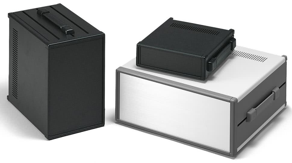 Obudowy przeznaczone do urządzeń przenośnych należą do najbardziej zróżnicowanych wśród wszystkich obudów uniwersalnych dostępnych na rynku. Charakteryzują się dość znacznym rozrzutem rozmiarów i kształtów korpusu, ale punktem wspólnym jest duży nacisk na ergonomię oraz dostępność licznych opcji montażowych dla elektroniki i baterii. Szczególnie ciekawie prezentuje się na tle konkurencji seria CARRYTEC marki OKW (fotografia 3), przeznaczona do budowy przenośnych urządzeń medycznych, aparatury pomiarowej czy oprzyrządowania specjalistycznego, stosowanego np. w lotnictwie i innych pracach terenowych.