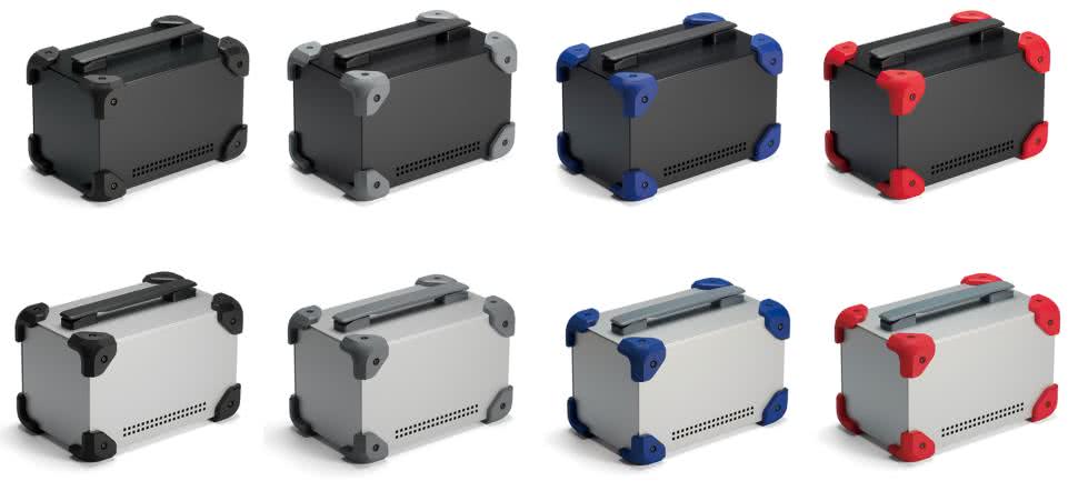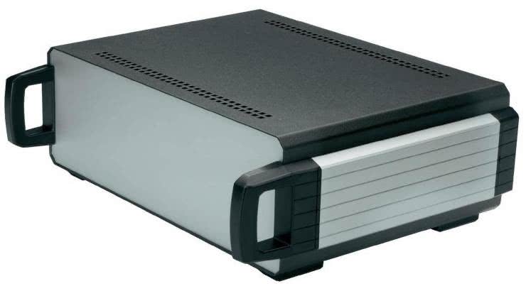 Ten sam producent oferuje ponadto solidne, metalowe obudowy MCG (fotografia 18) wyposażone w charakterystyczne, gumowe narożniki ochronne i rączkę umieszczoną centralnie na górnej pokrywie obudowy. Podobne obudowy są chętnie stosowane m.in. w niektórych stacjach lutowniczych, niewielkich spawarkach, zasilaczach laboratoryjnych i innych urządzeniach warsztatowych oraz pomiarowych.