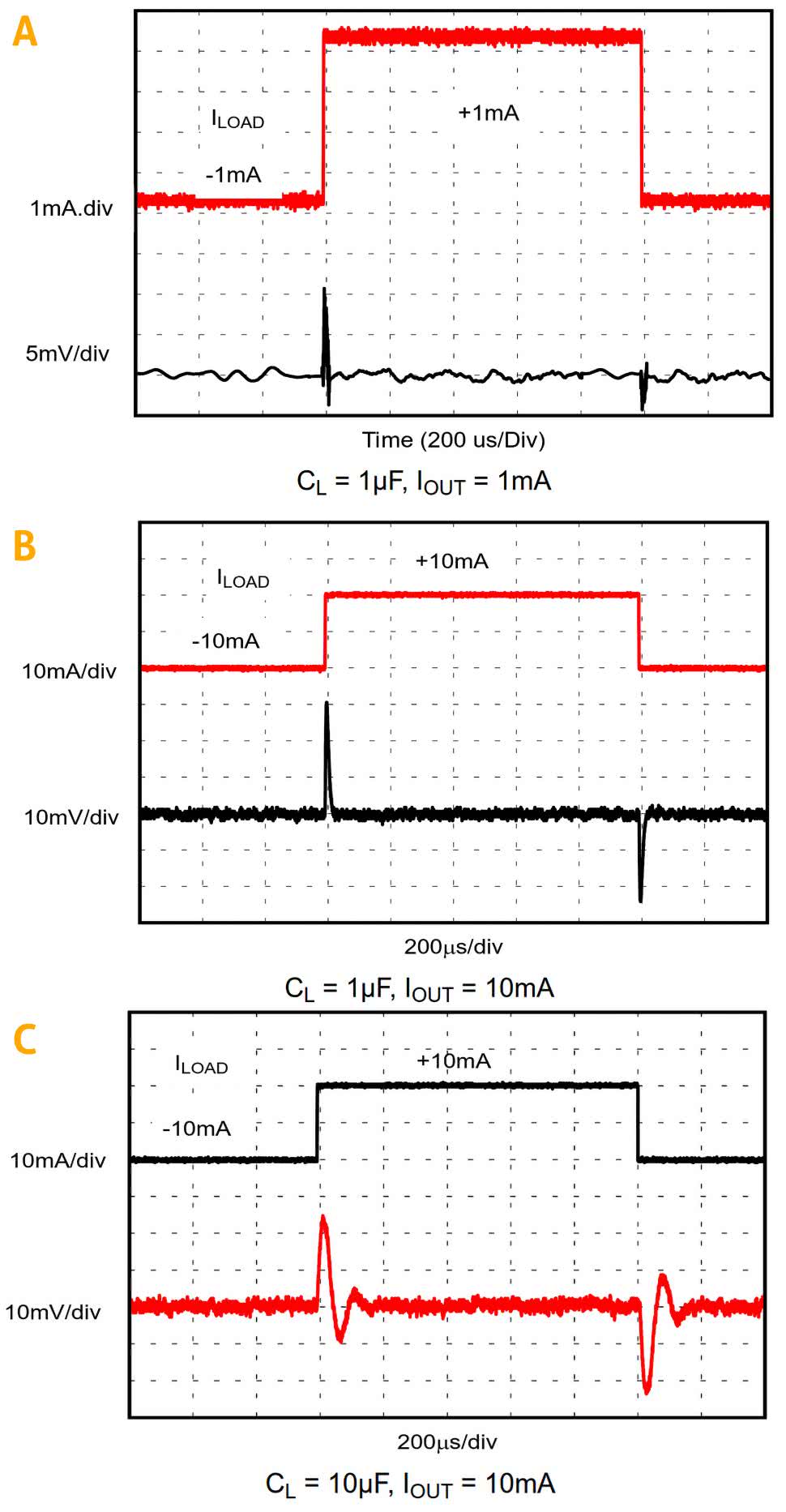 Nie można też pominąć wydajności prądowej i sposobu obciążania wyjścia źródła napięcia odniesienia. Wielu konstruktorów czyta kartę katalogową tak, jakby referencja miała zasilać wyłącznie wysokoimpedancyjne wejścia JFET. Tymczasem nowoczesne przetworniki SAR potrafią pobierać ze wzorca krótkie impulsy prądu związane z ładowaniem wewnętrznych pojemności. Bez lokalnego bufora i dobrze dobranych pojemności odsprzęgających „szarpanie” prądu przez wejście VREFIN konwertera prowadzi do wzrostu błędu przetwarzania, pomimo że stabilność źródła w warunkach (niewielkiego) obciążenia statycznego wciąż jest fantastyczna. Sama informacja, że wyjście danego układu może dostarczyć np. 10 mA prądu nie oznacza jeszcze, że układ poradzi sobie z gwałtownymi pikami prądu o stromym narastaniu, pobieranymi przez „uwieszony” na nim przetwornik lub inny układ analogowy. Odpowiedź skokową źródła można zobaczyć w nocie katalogowej i wygląda ona przeważnie tak, jak na rysunku 22. Trzeba patrzeć także na stabilność powiązaną z zastosowaniem pojemności wyjściowej, odpowiedź skokową i zalecane sposoby połączenia z ADC (np. z dodatkowym buforowaniem lub bez).