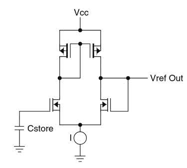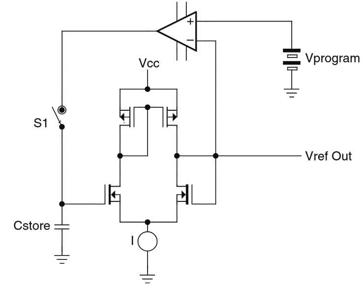 Firma Intersil opracowała kiedyś bardzo interesującą technologię o nazwie floating-gate analog (FGA), kładąc nacisk na bardzo niski pobór prądu, bardzo mały dryf i dobrą dokładność początkową. W opisach literaturowych pojawiają się zresztą konkretne liczby: dryf temperaturowy 1 ppm/°C, dokładność początkowa 0,01% i pobór prądu poniżej 1 μA. Sama technika realizacji tego rodzaju układów jest niezwykle ciekawa, gdyż całkowicie porzuca podejście polegające na oparciu wzorca na specyficznych parametrach elektrycznych półprzewodnika. Tutaj źródłem wartości referencyjnej nie jest bowiem sama przerwa energetyczna czy napięcie przebicia, ale... ładunek „zapamiętany” w specjalnej, odizolowanej od reszty układu komórce analogowej pamięci (rysunek 19).