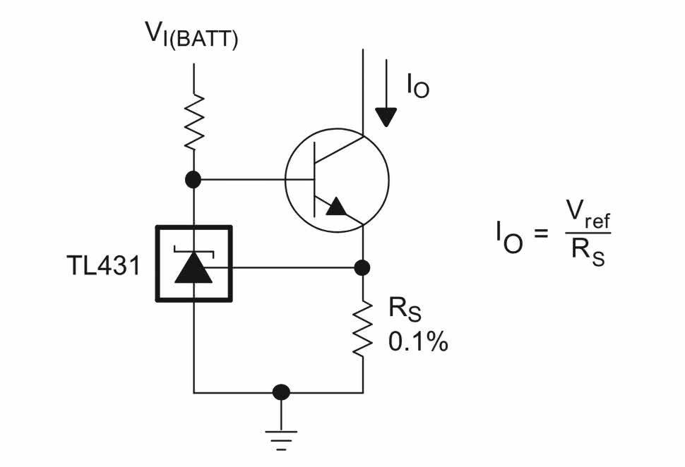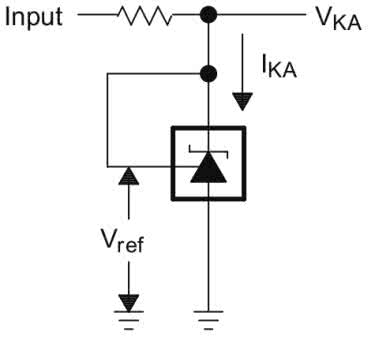 Źródła typu shunt działają w sposób zbliżony do precyzyjnej diody Zenera: utrzymują stałe napięcie, odprowadzając nadmiar prądu z rezystora ograniczającego (RS) do masy układu (rysunek 7).