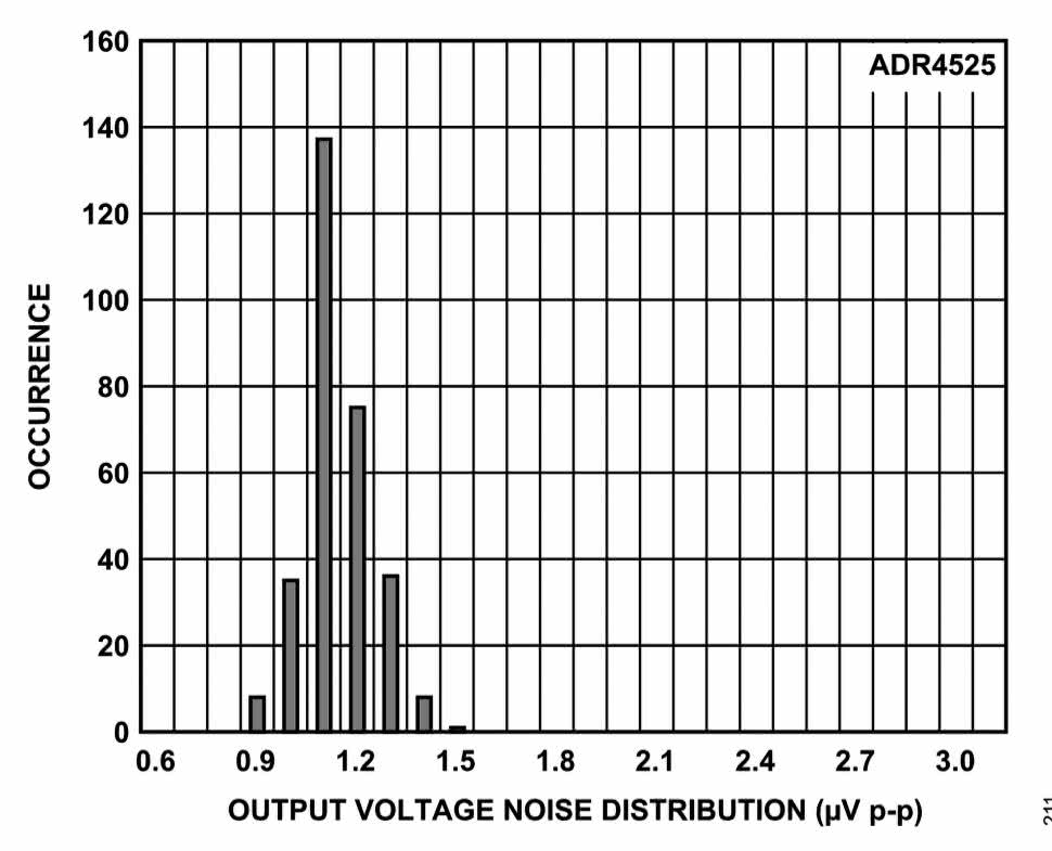 Tu znów warto uważać na interpretację. Napięcie 1 μVpp dla referencji 2,048 V wygląda znakomicie i rzeczywiście takie liczby oferują dziś najlepsze układy, na przykład ADR45xx w przypadku wariantu 2,048 V. Z kolei w dokumentacji REF50xx-EP firmy TI można znaleźć zapis 3 μVpp/V, co w przypadku wersji 2,5 V przekłada się już na 7,5 μVpp – zamiast różnicy trzykrotnej mamy więc wynik gorszy prawie 8 razy!